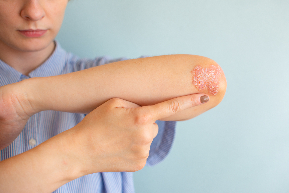 Psoriasis is a chronic skin condition caused by an overactive immune system that speeds up skin cell production, leading to inflamed, itchy, and scaly patches. These patches often appear on areas like the elbows, knees, and scalp, where skin tends to be drier and harder to moisturize. Many patients tell us psoriasis flare-ups can last from days to weeks, but effective treatment can help manage symptoms and improve quality of life.